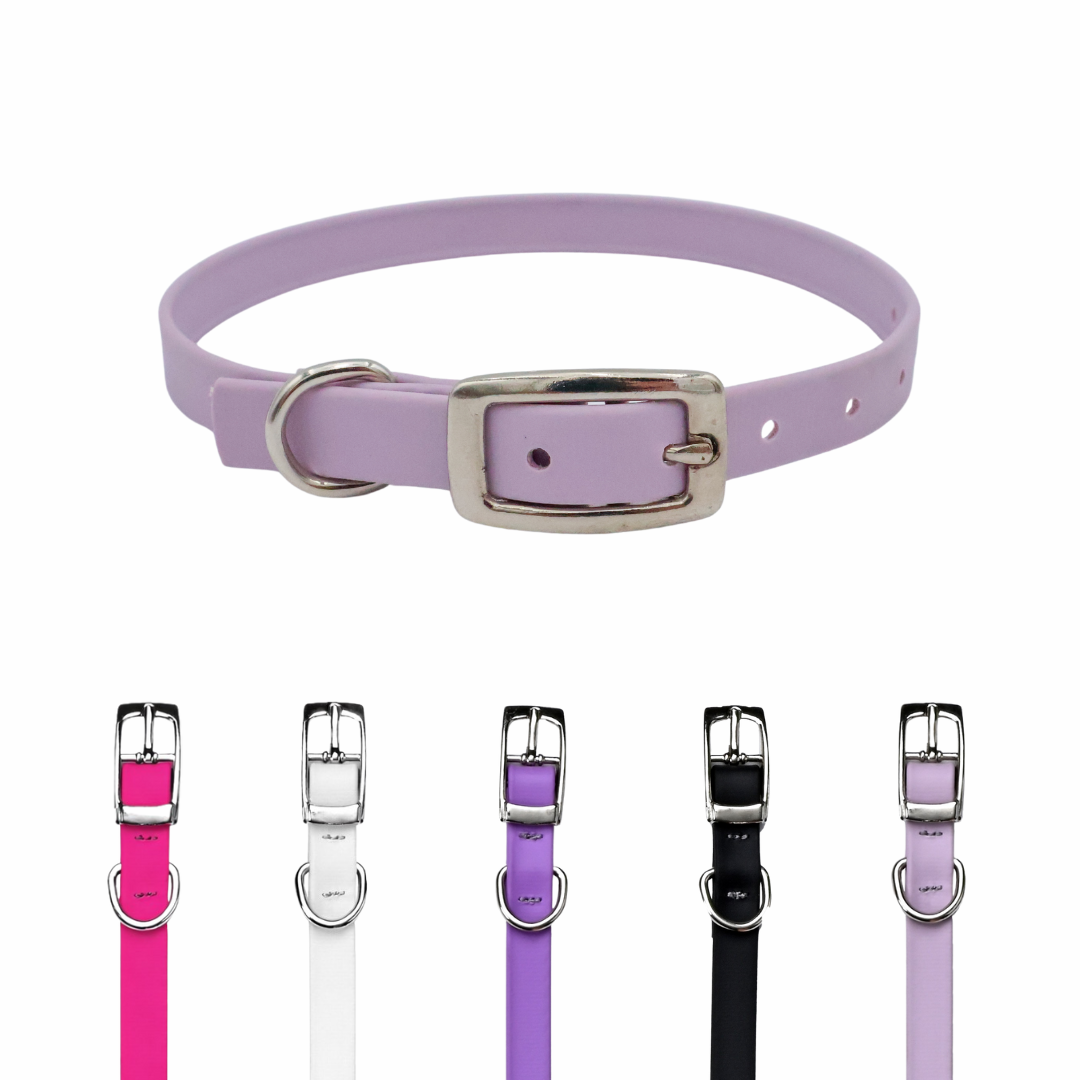 Available in five vibrant colors—Black, White, Pleasant Plum, Bright Lavender, and Coral—and four adjustable sizes, these collars mix personality with perfect fit. Whether your pet’s chasing waves or napping in the sun, their collar will always look and feel fresh.