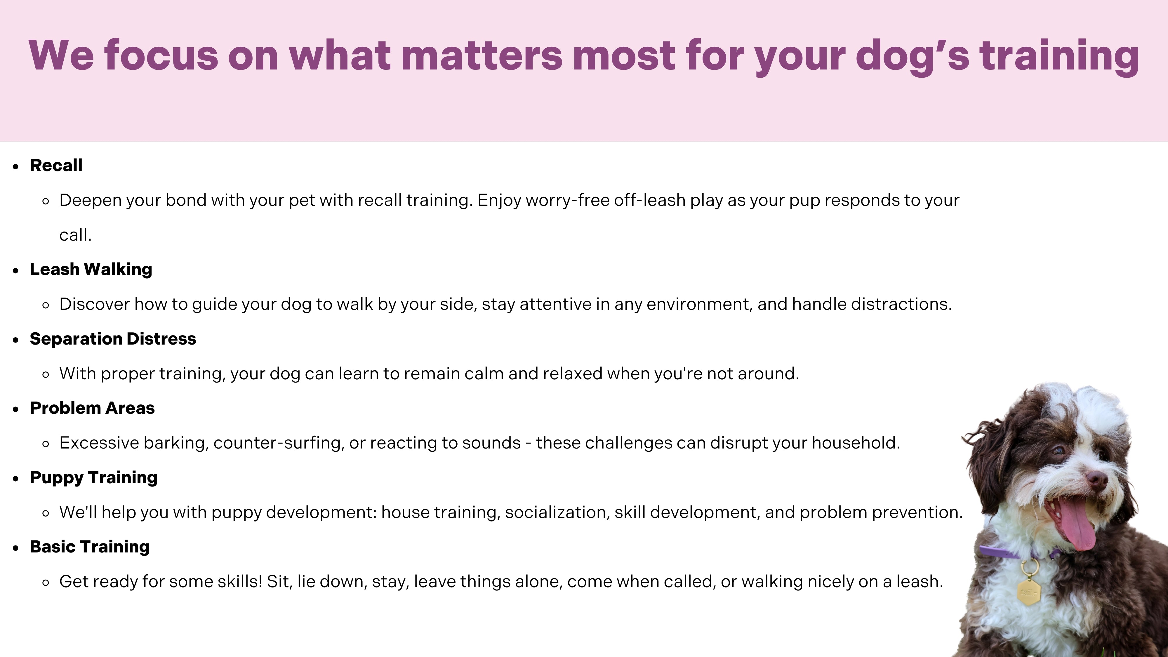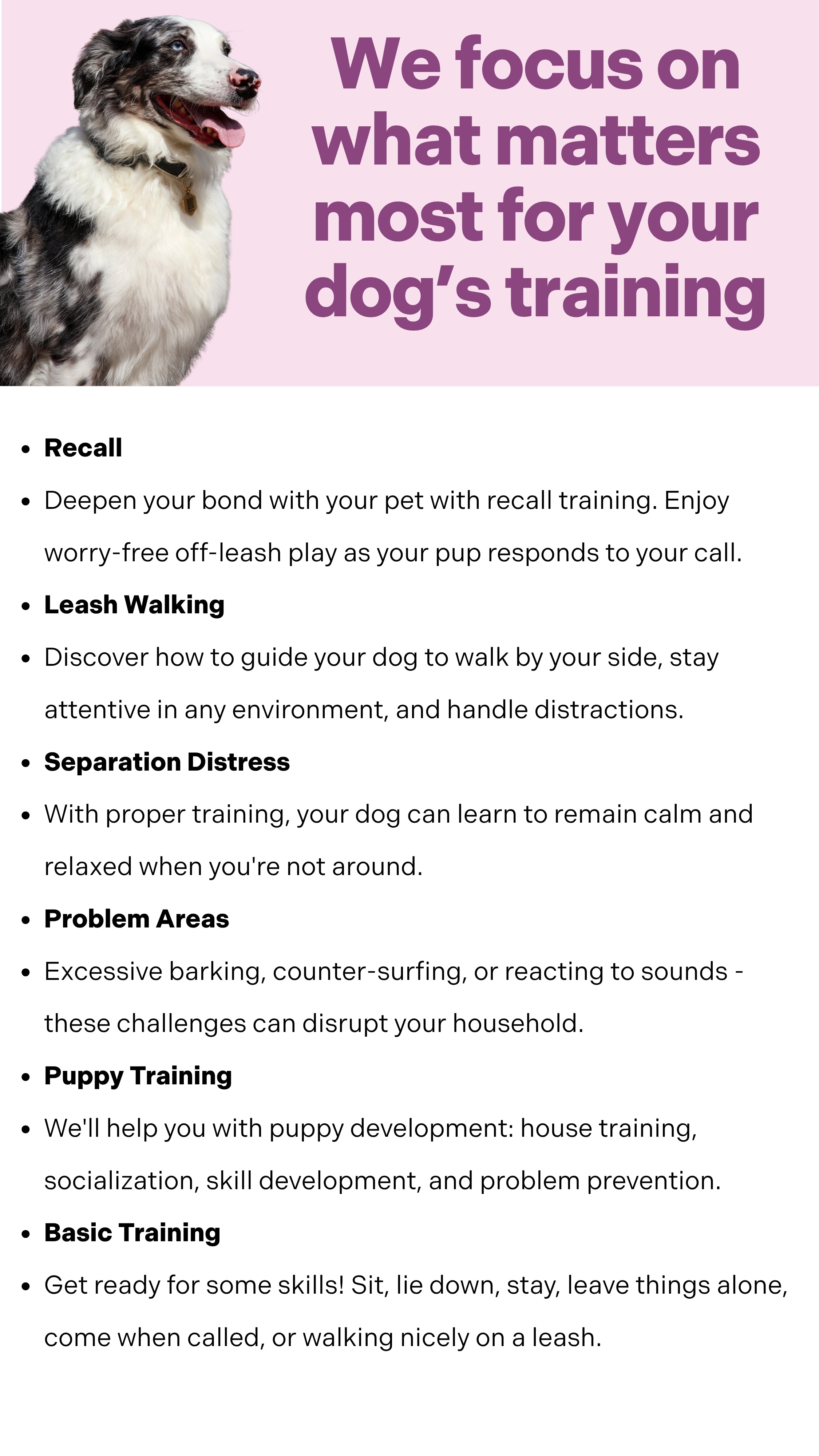 - Personalized one-on-one video sessions with compassionate dog trainers.